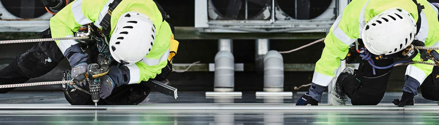 Hos Sky-Work er alle vores professionelle håndværkere IRATA-certificerede teknikere på enten niveau 1, 2 eller 3. Vores teknikere arbejder i teams af minimum to personer og altid med en erfaren niveau 3-klatrer på holdet.